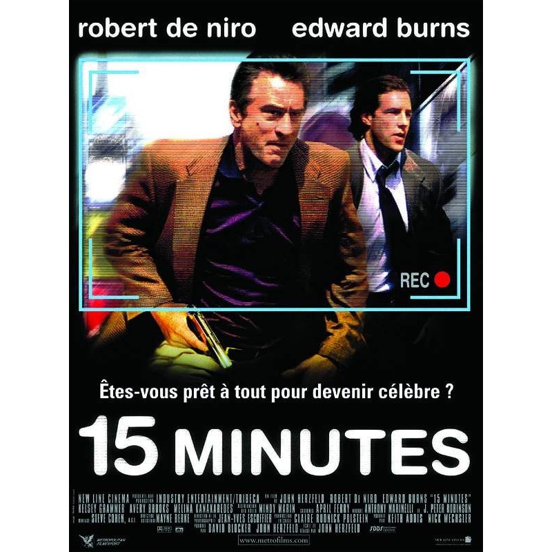 Affiche neuve du film 15 minutes - Dimensions 40cm x 60cm (60cm de hauteur sur 40cm de largeur) - Affiche pliée. Sortie d'usine, jamais dépliée ni affichée. Envoi par La Poste.